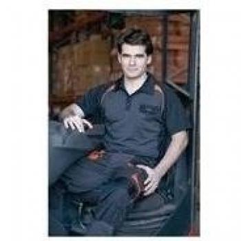 Polo de manga corta en talla XL, tejido ligero con tecnología de respiración que mantiene fresco el torso; bolsillo frontal práctico y contraste naranja sobre negro resaltan su estilo versátil para trabajo o tiempo libre.
