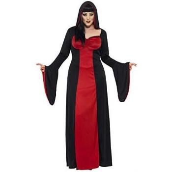 Disfraz de Vampiresa Siniestra para Mujer con Vestido Largo y Capucha en Rojo y Negro - Talla XXL