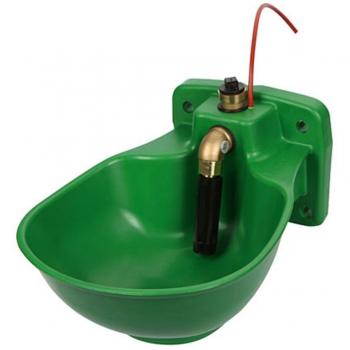 Bebedero plástico HP20 de Kerbl con calefacción de 73 W que mantiene el agua a temperatura constante gracias al termostato integrado; su válvula ajustable controla el flujo y evita derrames, ideal para aves en climas fríos.