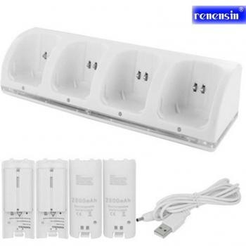 Batería recargable 4x negra de + Kit de estación de carga Quad 4 para mando a distancia Wii,