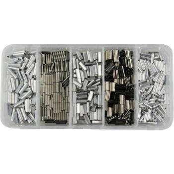 Manga de bucle de prensado de aluminio, virola de doble cilindro para cuerda de alambre de pescado y Kit de extremo de línea de Cable, surtido, 500 Uds.