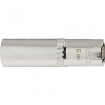 Llave de vaso 18 mm con mango de goma antideslizante y superficie cromada, ideal para ajustes rápidos en equipos automotrices o electrónicos. Su diseño compacto permite acceso a roscas estrechas sin esfuerzo.