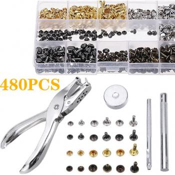 Conjunto Artístico de Remaches de Cuero – 480 Piezas, Doble Tapa