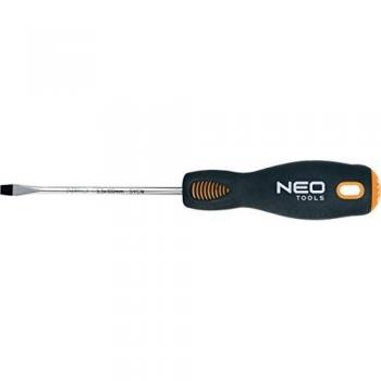Destornillador plano KS Tools Ergotorque plus de 5,5 mm con punta de acero cromado vanadio que ofrece resistencia a la corrosión y un agarre cómodo gracias al mango compuesto antideslizante; su longitud de 205 mm lo hace ideal para trabajos precisos en espacios reducidos.