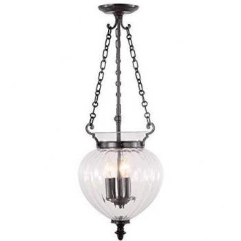 Lámpara colgante Finsbury Park de 27 cm con tres bombillas E14, acabado en níquel pulido y cristal claro que difunde luz cálida y sofisticada, ideal para salas o comedores modernos.