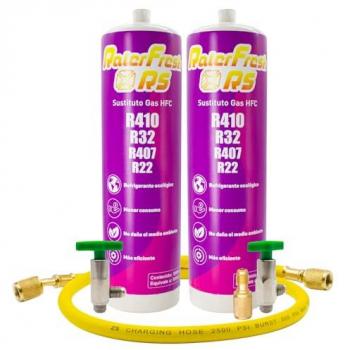 Pack 2 botellas de refrigerante RALERFRESH RS - Sustituto para gases R410, R32, R407 y R22 con llave, adaptador y manguera