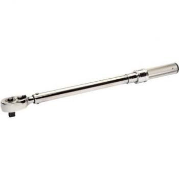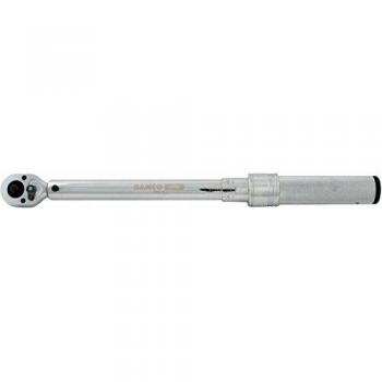 Llave dinamométrica Bahco 7455‑340 con disparo ajustable y mango metálico, longitud de 620 mm. Su rango de torque es de 60 a 340 Nm y la escala marcada combina unidades métricas e imperiales para mediciones precisas en cualquier trabajo mecánico.
