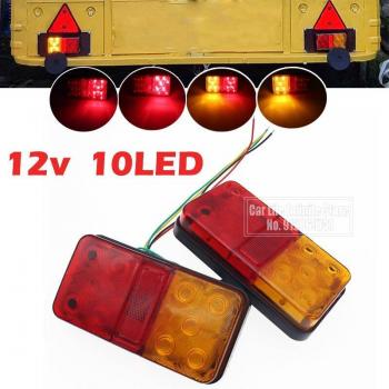 Luces traseras para remolque, lámpara LED 12V, 10 LEDs, luz de freno roja y señal de giro ámbar, 2 piezas