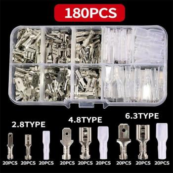 Conectores de pala aislados (180 uds, latón, 2.8/4.8/6.3 mm)
