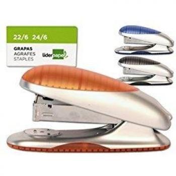 Grapadora Liderpapel con regalo extraegrapas y caja de 1000 grapas 26/6, 24/6, 22/6 20h colores surtidos 52315-GR33