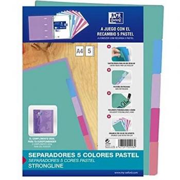 Separadores A4 5 posiciones PP color pastel Oxford