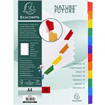 Separador archivo Exacompta din a4+ multitaladro con 12 separadores cartulina color surtidos