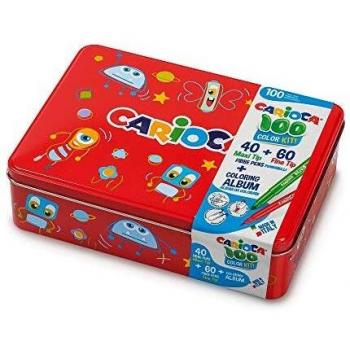 100 Rotuladores Super Lavables con una Caja de Metal Rojo