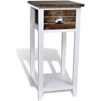 Mesa de noche de madera Sheesham con acabado en palisandro, alta 55 cm, un cajón profundo para lámparas o libros; su diseño vintage aporta calidez y elegancia al dormitorio.
