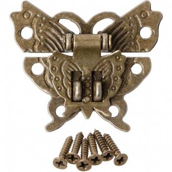 Cerrojo mariposa de bronce antiguo, cierre para caja de madera, 45x37mm
