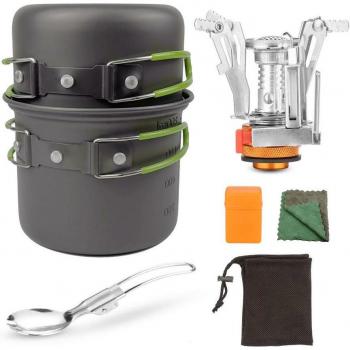 Juego de Mini estufa de Camping al aire libre, olla compacta de aleación de aluminio, plegable, portátil, cocina de Gas para Picnic,