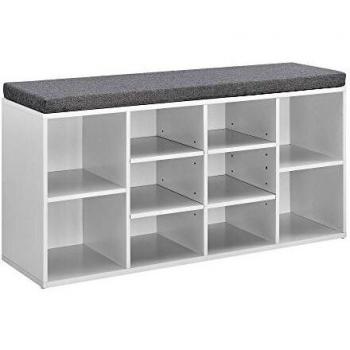 Banco zapatero Ymir con tapizado, 10 compartimentos, aglomerado, 103 x 30 x 48 cm, Blanco / Gris