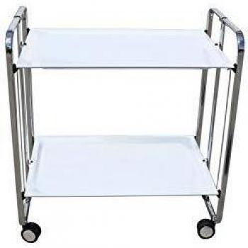 Carrito metálico auxiliar con ruedas, 2 bandejas, color blanco