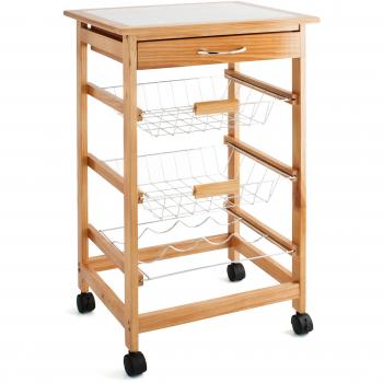 Quid Carrito Verdulero con 2 cestas y botellero, Madera, Marrón, 38x18.5x71 cm