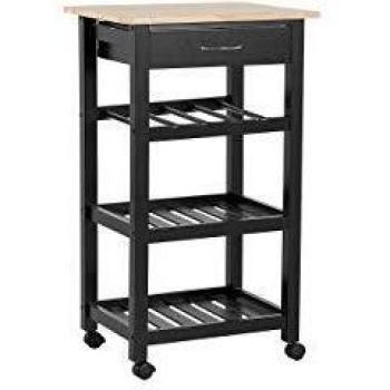 Carrito de cocina con botellero y cajón - MDF y madera de caucho negro