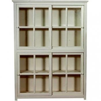 Biblioteca Vitrina de Madera Maciza de Tilo con Puertas Correderas y Acabado Blanco Envejecido 154x37x212 cm