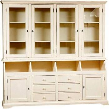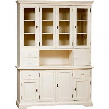 Vitrina Country de Madera Maciza de Tilo con Acabado Blanco Envejecido 200x156x50 cm