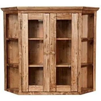 Vitrina de colgar de madera maciza de tilo con acabado natural, 86x75x21cm, estilo Country y shabby chic