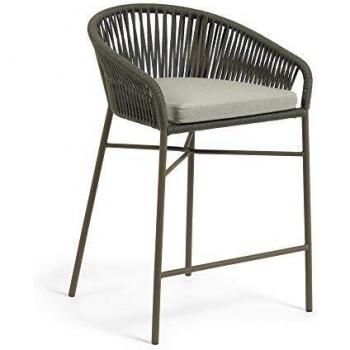 Kave Home - Taburete Yanet de cuerda verde y acero galvanizado altura 65 cm