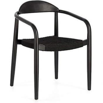 Silla apilable Nina de madera maciza de acacia acabado negro mate y cuerda negro