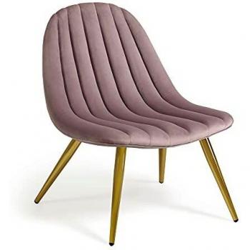 Silla Marlene de Terciopelo Rosa con Patas de Acero Dorado