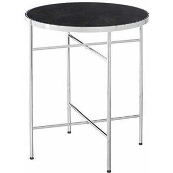 Mesita Redonda de Cristal, contemporánea en Negro y Plateado, de ø 42x51 cm - LOLAhome