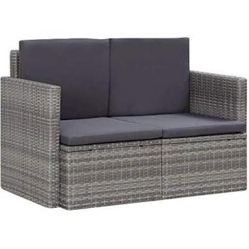 Sofá de jardín de 2 plazas con cojines de ratán sintético gris