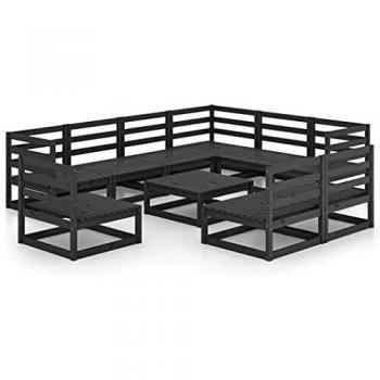 Sofás de jardín Set 10 PCs con almohadas de Polyrattan negro