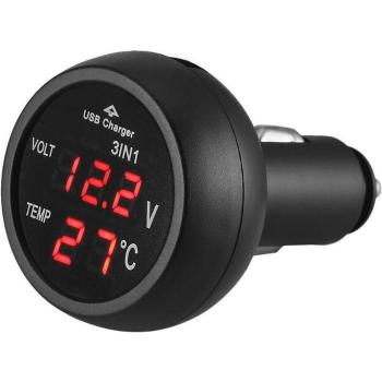 Monitor de Coche 12/24V con Cargador USB, Voltímetro y Termómetro