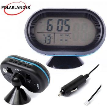 Termómetro Digital y Medidor de Voltaje 12V con Reloj LCD