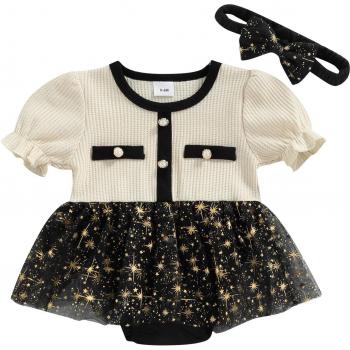 Traje infantil estrellado, sin mangas, cuello redondo, abrochable, verano, 0-18 meses
