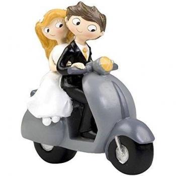 Mopec Figura de Pastel Pareja de Novios en Moto, Blanco