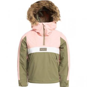 Roxy Sheltergirl - Chaqueta de Nieve para Niño - Rosa Claro y Verde Oscuro