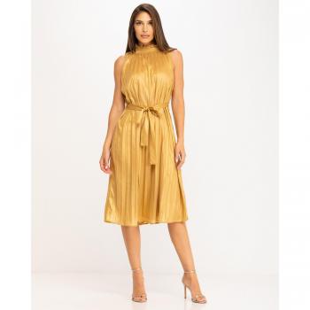 Niza - Vestido midi plisado metalizado con detalles elegantes y sofisticados