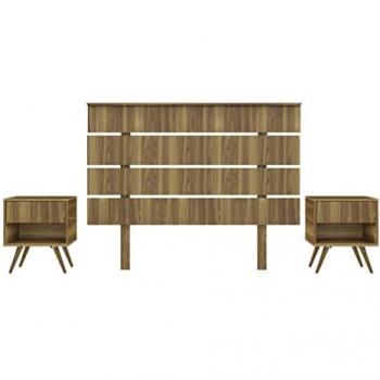 Conjunto cabezal + 2 mesitas MDF - modelo Tomaro - tiras horizontales y patas de madera