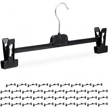 Pack de 40 Perchas para Pantalones con Pinzas, Plástico-Hierro, Negro, 14 x 36 x 3 cm