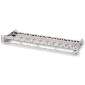 Panel de parcheo compacto con 16 puertos RJ‑45, acabado blanco puro RAL9010, diseñado para montaje en pared o gabinete. Dimensiones 300 mm × 43,6 mm × 110 mm y compatible con cables CAT 6a, facilita la organización del cableado y conexiones rápidas.