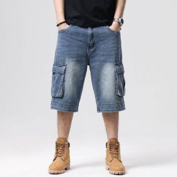 ¡Novedad del 3/4! Pantalones cortos de tela vaquera para hombre, ropa de calle Vintage para hombre, pantalones cortos de tela vaquera holgados de estilo urbano a la para hombre, Bermudas holgadas de talla grande 46 44