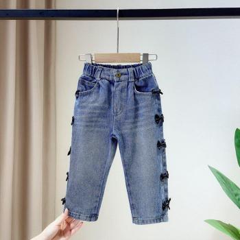 Pantalones vaqueros para niña y niño, pantalón vaquero con lazo para niño, Pantalón recto de princesa de estilo coreano, largo completo, S11307