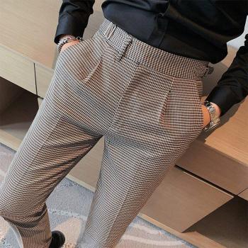 Pantalones elegantes de pata de gallo para hombre, con cintura alta, longitud hasta el tobillo, talla 36