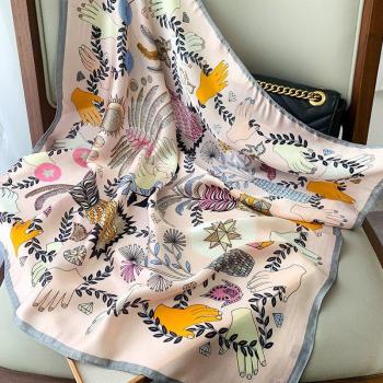 Bufanda de seda de imitación cuadrada plisada para mujer, bufandas elegantes y elegantes, pañuelo de viaje para el cuello, pañuelo,