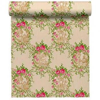 Papel Pintado Floral en Tonos Rosa, Verde y Crema Suave
