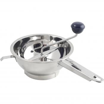 Con su compacto diseño de 20 cm y dos discos de acero inoxidable 18/10, esta pasapurés doméstica transforma verduras en puré liso con facilidad; el mango ergonómico asegura un agarre cómodo y la construcción resistente facilita la limpieza.