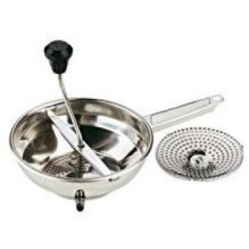 Pasapures de acero inoxidable M Baquita de 20 cm con dos discos intercambiables, pensados para máquinas espresso de alta presión; su diseño compacto y resistente facilita el montaje y la limpieza sin esfuerzo.