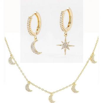 Duo Celestial: Pendientes y Collar de Luna y Estrella